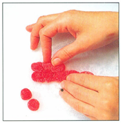 Når du bladrer gennem dette farverige afsnit over pynt vil du opdage hvor let det er at forvandle almindelige ingredienser som fx gulerødder, æbler, vingummi og chokolade til noget ekstra-specielt. For eksempel kan peberfrugttrekanter give et spændende præg til grillmad. Eller glæd dine gæster med dine egne elegante karamelroser.