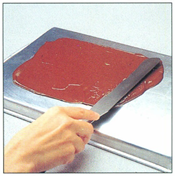 (for at undgå at tærtedejen klæber til kagerullen, bruges en kagerulle med beklædning).