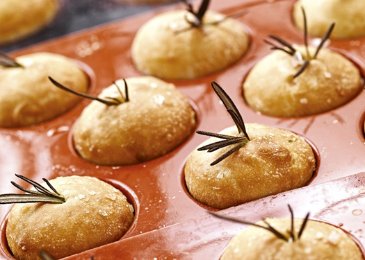 Stik små buketter rosmarin ned i hver lille bolle, og
