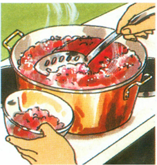 4. Hæld marmeladen på glas, der lukkes til straks.