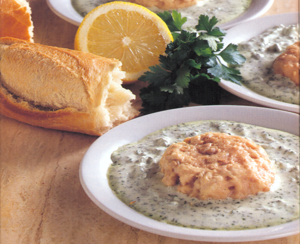 Tatar, varm fiske - se Fisketatar, varm, med grøn sauce.