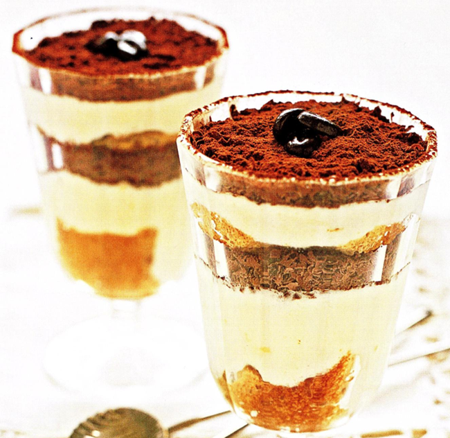 Her får du tiramisu i flere spændende udgaver. Vælg mellem kaffe og kanel, med marsala, med Amaretto, med honningbrød og chokolade eller uden kaffe.