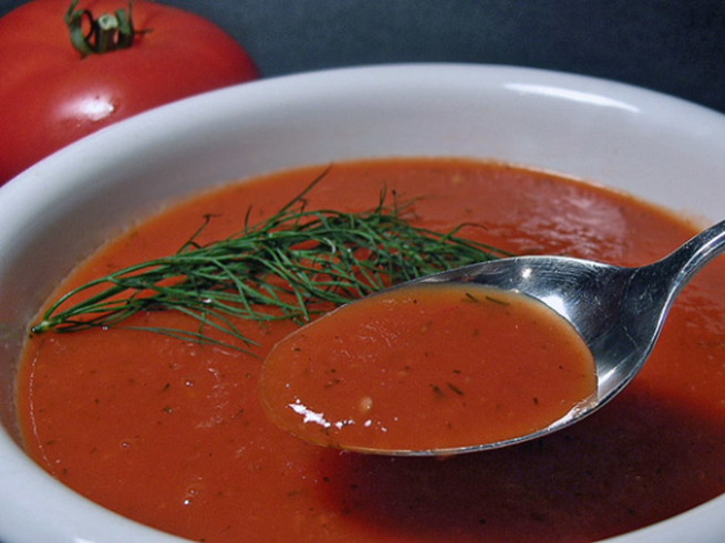 6. Server den kolde suppe pyntet med fintklippet dild.