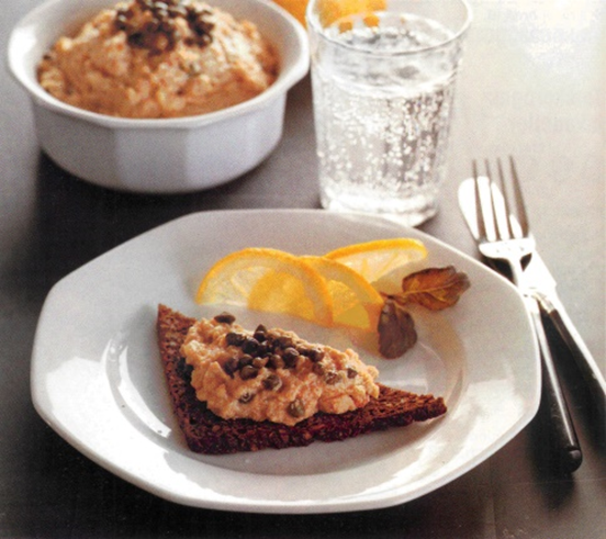 3. Anret torskerognstataren i en skål og pynt med citronryttere og kapers.