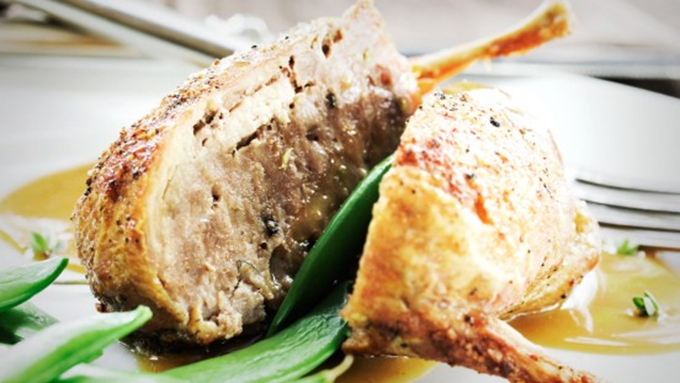 3. Fyld lidt fars i hver vagtel og luk dem med en kødnål.