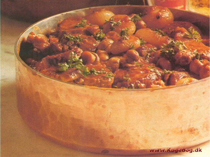 2. Lad kødet dryppe godt af og brun det herefter i 25 g smør i en stegegryde.