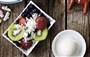 Kreativ brug af smuk og farverig frugt giver mange ideer til kaloriefattige retter. Nødder tilføjer protein og smag. Dobbelt op af dagsbehov for C-vitamin.